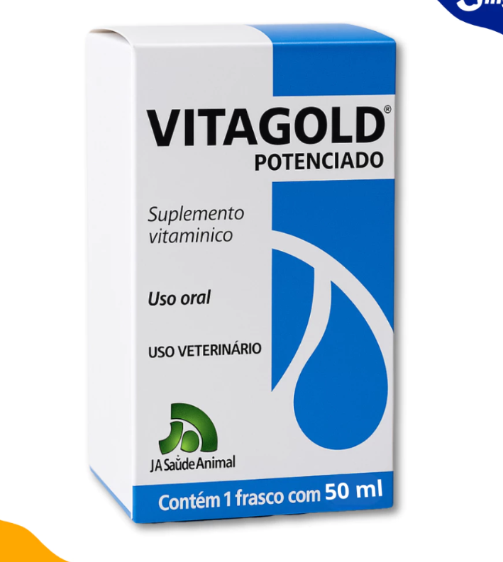 O Vitagold é um suplemento vitamínico oral rico em vitaminas lipossolúveis (A, D3, E) e hidrossolúveis (várias do complexo B), indicado para suplementar as vitaminas que podem faltar na dieta dos animais. Ele é usado para apoiar a saúde, recuperação e desempenho geral de aves e outros animais.