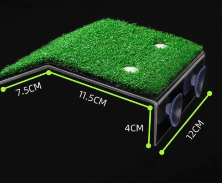 - A grama aquática simulada aumenta muito o atrito entre a tartaruga e a grama, e o design com declive suave permite que a tartaruga suba com facilidade.